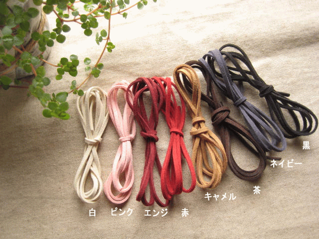 新色入荷!8色揃いました!手作りアクセサリー作りに大活躍!定番色の革ひも!スエード調!(合皮)